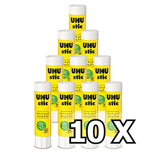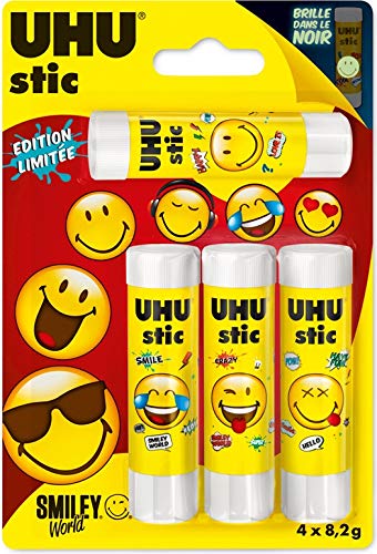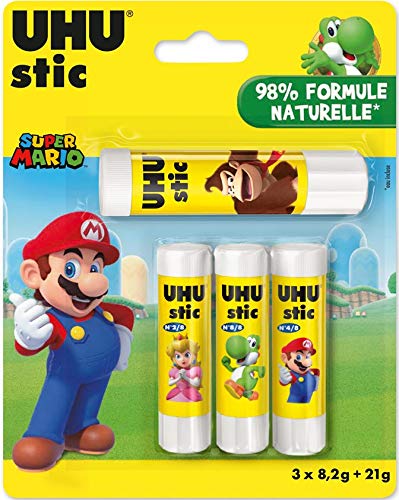 Le Magic stic de UHU est une colle bleue qui devient transparente en séchant. Elle permet de voir où l'on a placé la colle, ce qui est très pratique pour les jeunes écoliers.